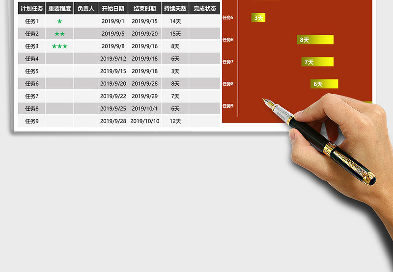 自動更新萬年歷日表(帶計劃甘特圖表)Excel表格模板