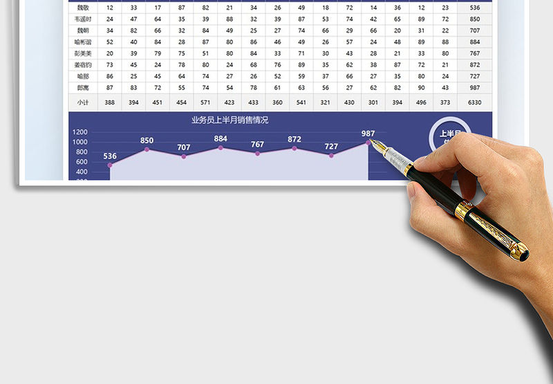 2022年年中銷售業績統計分析-業務員分析免費下載包含