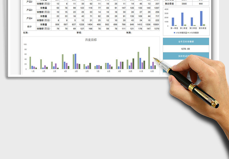 2021年年度銷售業績報表+動態圖表分析(提醒是否完成目標)包含