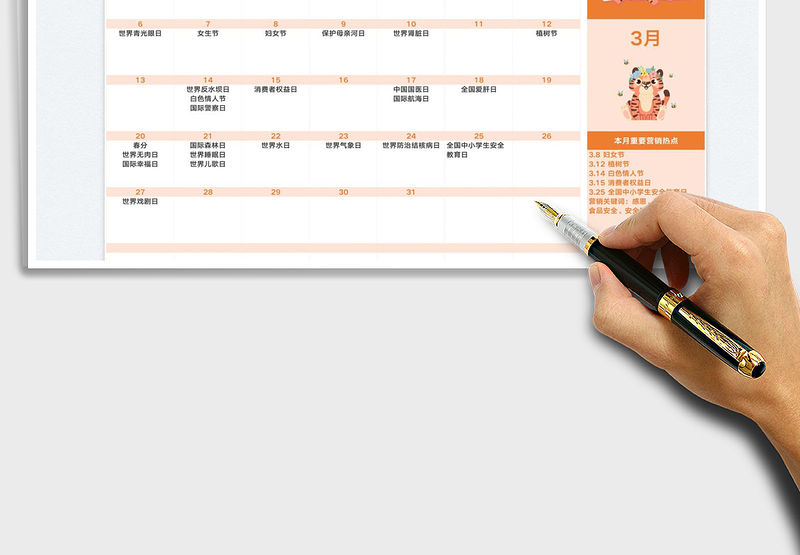 2021辛丑牛年全年營銷日歷多彩模板excel模板包含