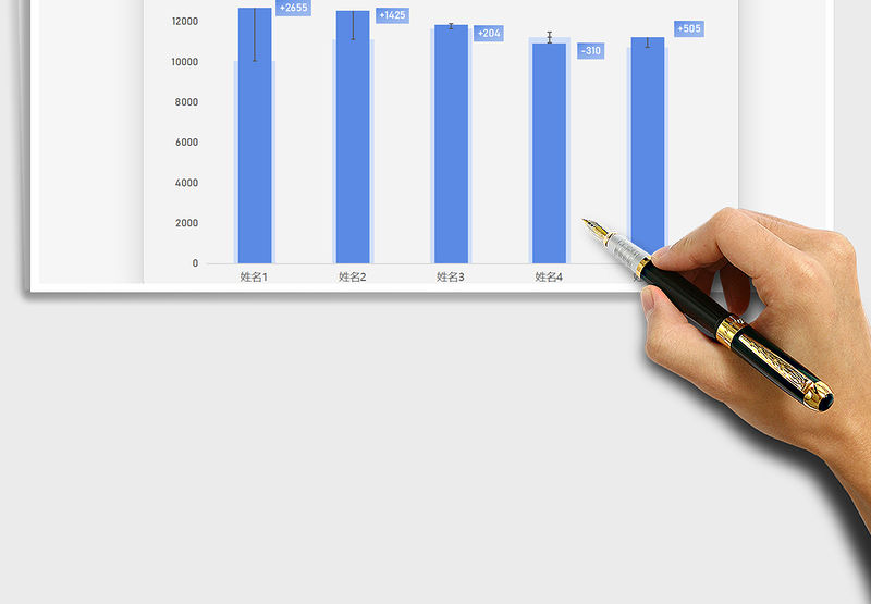 2022年通用圖表模板帶標記線的月份對比柱形圖免費下載包含