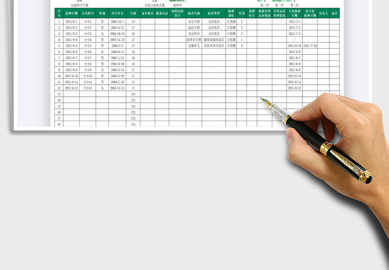 2021中小學班級疫苗接種登記表(自動統計)免費下載包含