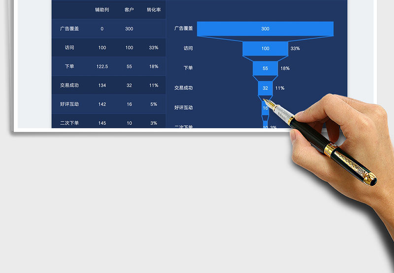 2021年某店鋪銷售轉化率漏斗圖表分析工具免費下載包含