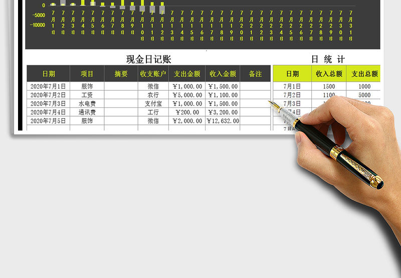 2021年日常收支記賬表-自動計算月份賬戶統計包含