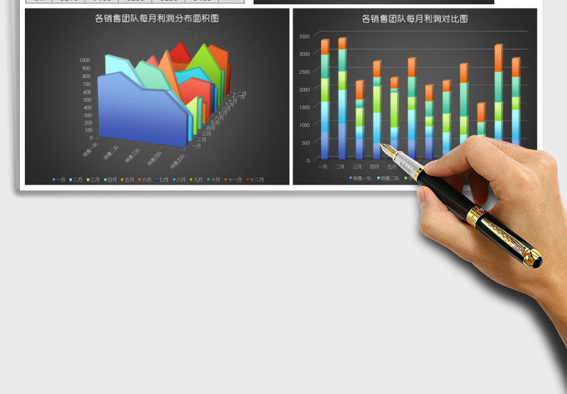各銷售團(tuán)隊(duì)每月利潤分析表excel模板黑
