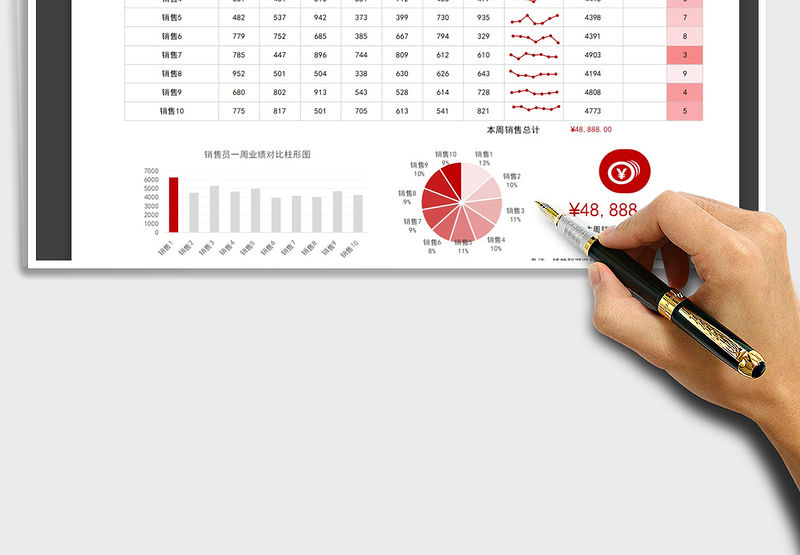 2021年銷售員銷售業績可視化柱形圖餅圖分析包含