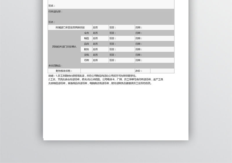 工圖網提供公司員工離職表Excel表供會員免費下載。更多精彩黨課PPT素材,盡在工圖網。