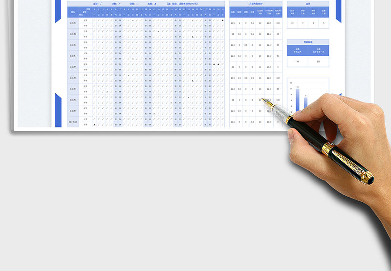 藍(lán)色簡約風(fēng)員工月度考勤表(自動計算) Array