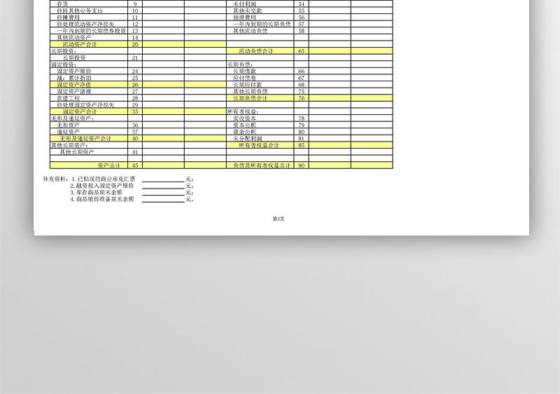 財(cái)務(wù)報(bào)表資產(chǎn)負(fù)債表Excel