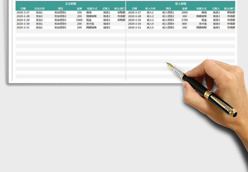 2022年收支記賬表-下拉選擇,自動統計免費下載包含