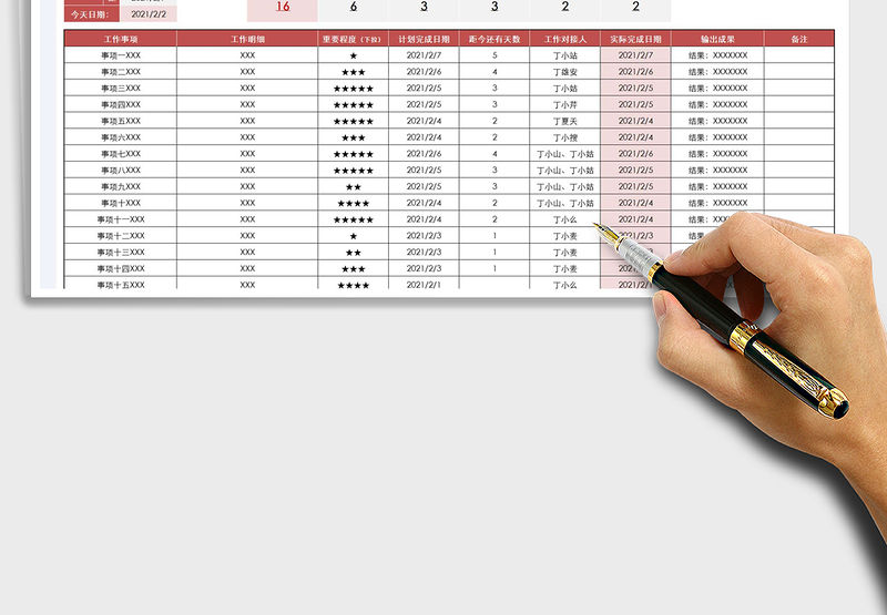 2021年日歷日程工作計劃表-一周計劃分類包含