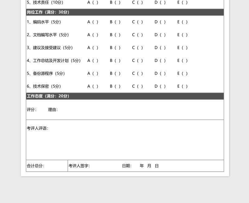 首頁 > Excel表格 > 人事 > 程序員IT軟件工程師績效考核評價表Excel表格.XLSX 【圖片、文字、動畫均可編輯】