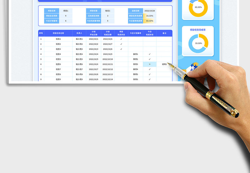 藍色簡約項目進度表(帶甘特圖)包含