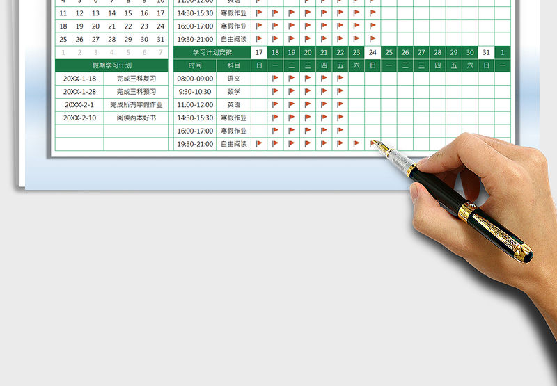 2021年寒假學習計劃表-自律打卡表包含