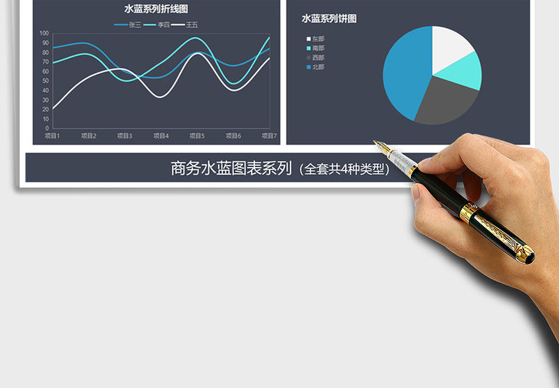 2022年綠色金屬拉絲透明圖表報表折線圖餅圖柱形圖免費下載包含