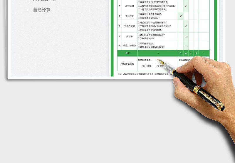 工圖網提供綠色簡約風含問題面試評估表免費下載供會員免費下載。更多精彩黨課PPT素材,盡在工圖網。