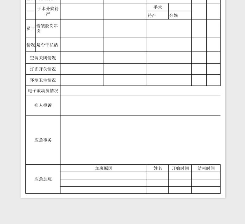醫院行政總值班工作記錄表包含