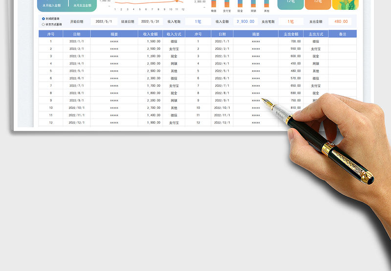 2022財務報表-季度收支條形分析圖表免費下載包含