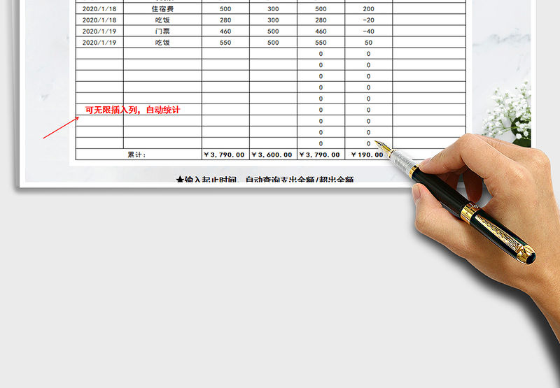 2021年旅行費(fèi)用清單-自動(dòng)統(tǒng)計(jì)、可查詢