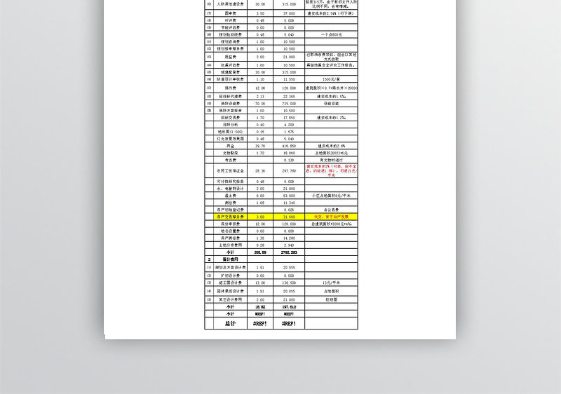 開發(fā)成本估算表excel表