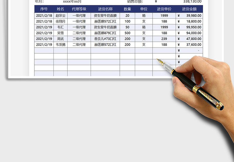 2021年經(jīng)銷商代理進貨金額統(tǒng)計表