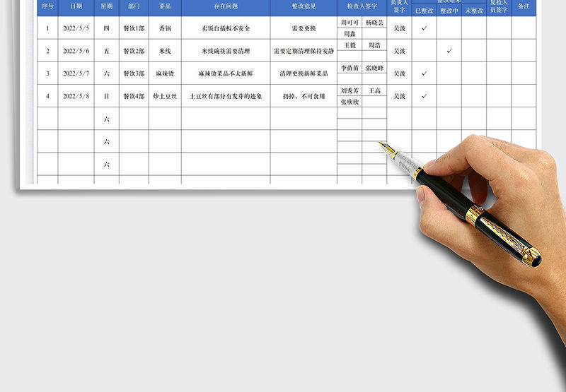 首頁 > Excel表格 > 登記表 > 2023飲食服務中心安全檢查記錄表免費下載.XLSX 【圖片、文字、動畫均可編輯】