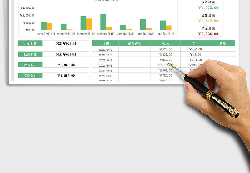 2021收支明細表-項目資金一周收支明細表免費下載包含