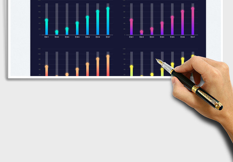 2021年彩色漸變帶陰影柱形圖表模板包含