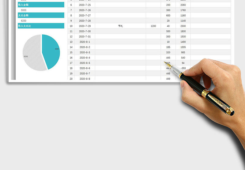 2021年財務收支日記賬(日統計)自動計算期初余額包含