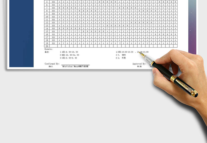 酒店各部門排班表(樣本) Array
