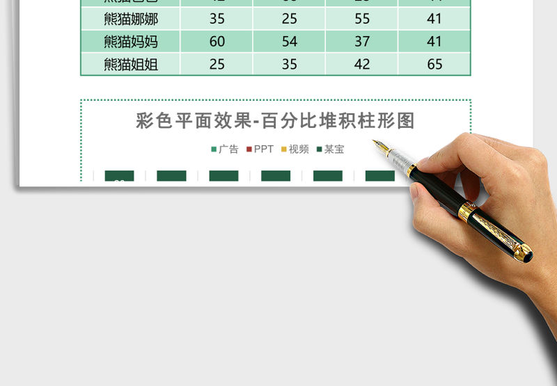 綠色紋理地域銷售簇狀柱形圖excel模板包含