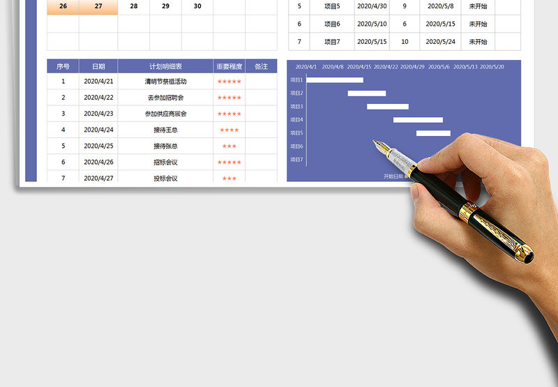 2021年日歷工作計劃表-工作進度表包含