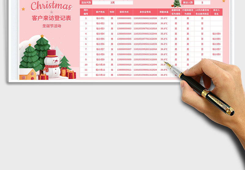 圣誕節活動客戶來訪登記表免費下載