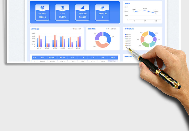 首頁 > Excel表格 > 銷售/采購 > 藍色商務風達標銷售數據報表(季度).XLSX 【圖片、文字、動畫均可編輯】