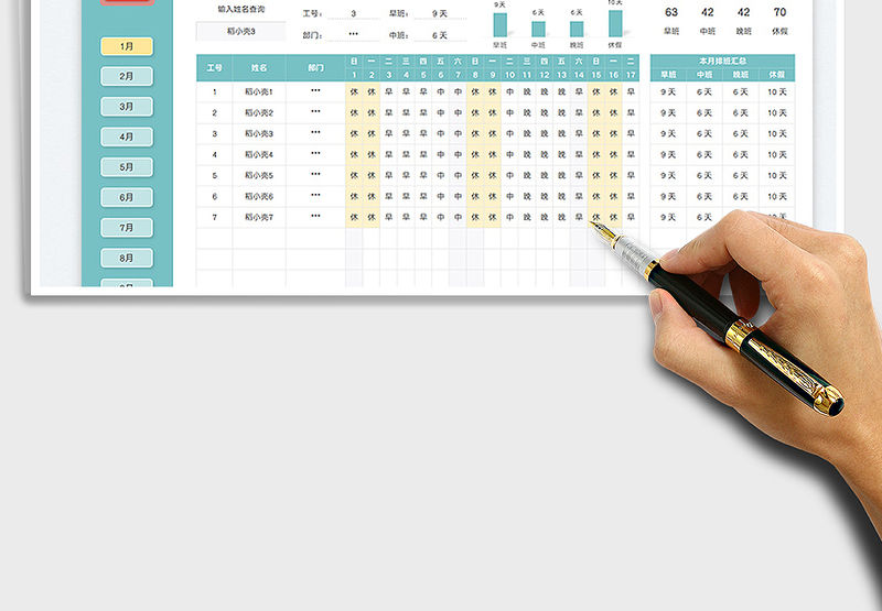 全年員工排班表(自動(dòng)統(tǒng)計(jì)) Array