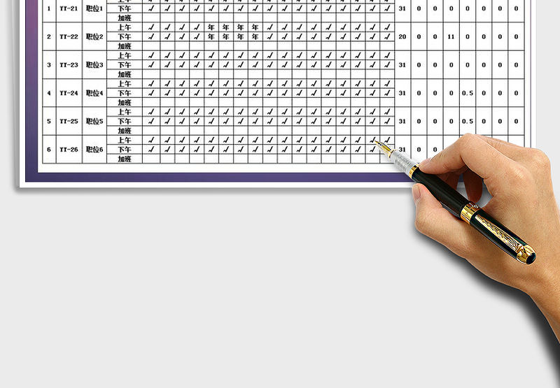 2021年考勤表(日期自動更新,自動統計月出勤率)包含