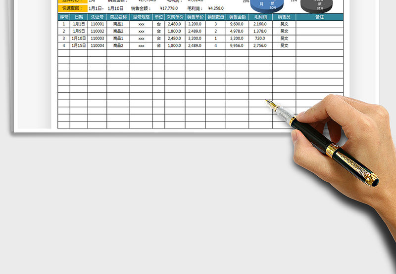 店鋪銷售總金額記錄月報表Excel模板表格包含