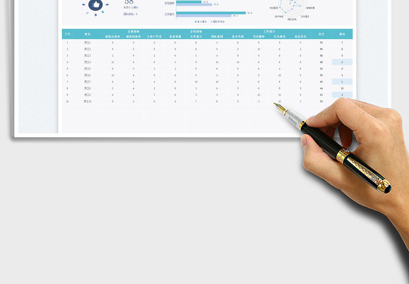 2022團(tuán)隊(duì)月度KPI匯總分析表免費(fèi)下載 Array