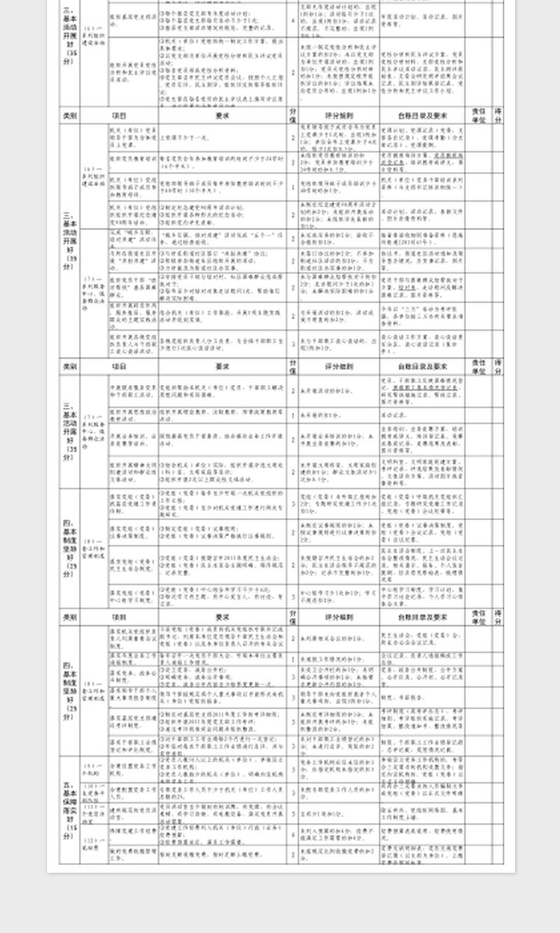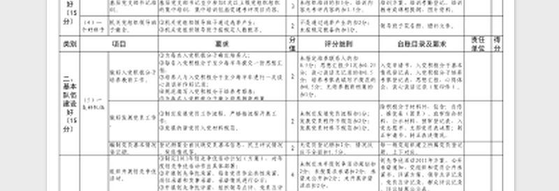 黨建工作目標管理責任制考核細則及評分自評表包含