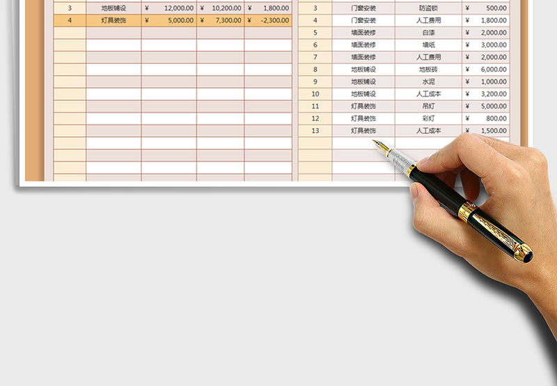 2021年裝修預算(可打印,自動計算,分類清晰)包含