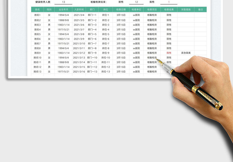 2022員工健康登記表(核酸記錄)免費(fèi)下載 Array
