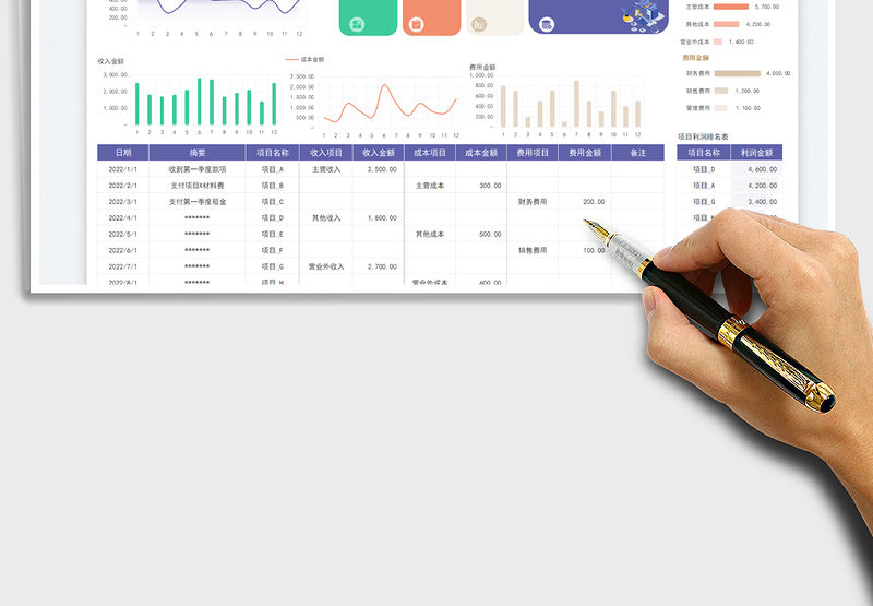 2021財務收入成本費用分析表-可視化圖表免費下載包含