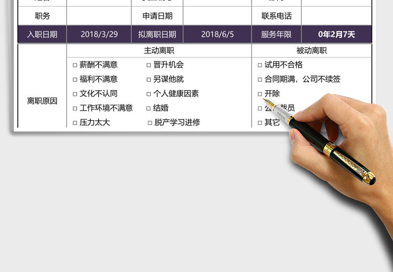 員工離職申請單excel表格