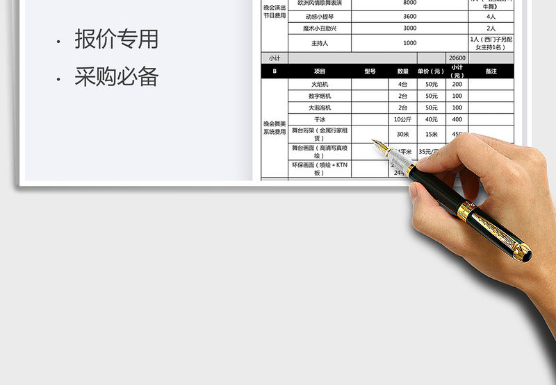 2021年公司年會費用預算明細表包含