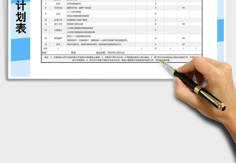 2021年工作計劃表-周計劃統計-甘特圖包含