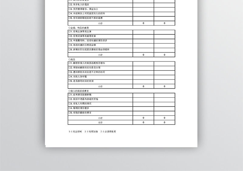 內(nèi)部操守道德檢查表Excel表