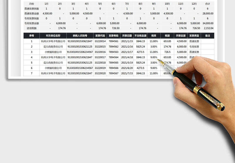 發票管理-發票登記表-稅額對比表包含
