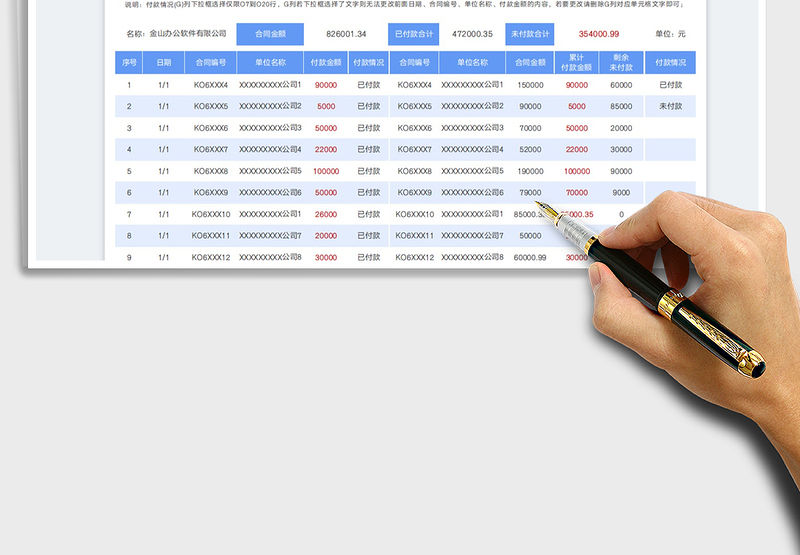 2022合同付款明細表免費下載包含