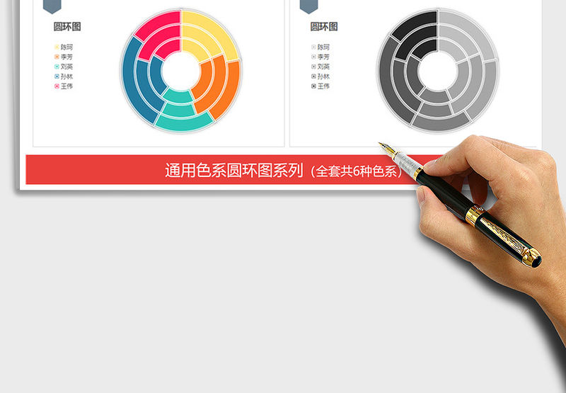 2021年通用色系圓環(huán)圖餅圖表模板 對比占比