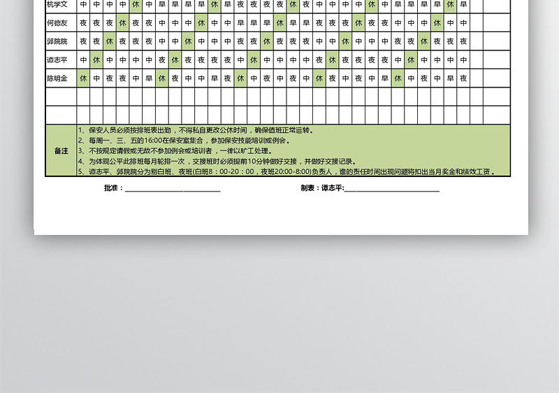 公司保安排班表格包含